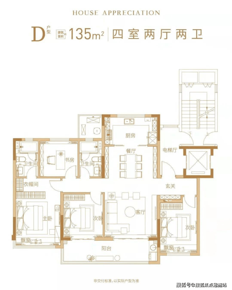 建面约135㎡的功能型四房户型,功能性兼舒适性一体,1∶1梯户比,减少业主使用电梯的等待时间,带来全方位的私密性和尊贵感。四房功能性是改善的主流,无论是三代同堂或是二宝家庭,都可以一步到位,更好的掌握生活的主动权,从容面对生活变化。