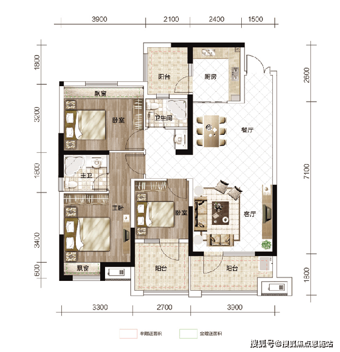 ▲A-4户型 三室两厅两卫 建面约115㎡