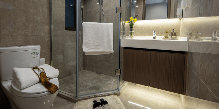 卫生间台盆龙头和坐便器均用的是TOTO,而且值得一提的是,还异常贴心地配置了高压喷枪,让卫生间清理从此变得轻松畅快。主卫淋浴房配汉斯格雅花洒,给主人卫浴更高升级。能细致到这程度,好活当赏。