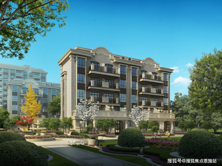 项目按照古典法式风格设计,运用黄金分割比例淬炼建筑外观,衬以山花、拱廊、石柱、铁艺灯等细节,突出轴线和对称美感。漫步其间,怡然自得,顾盼皆是法式风情!