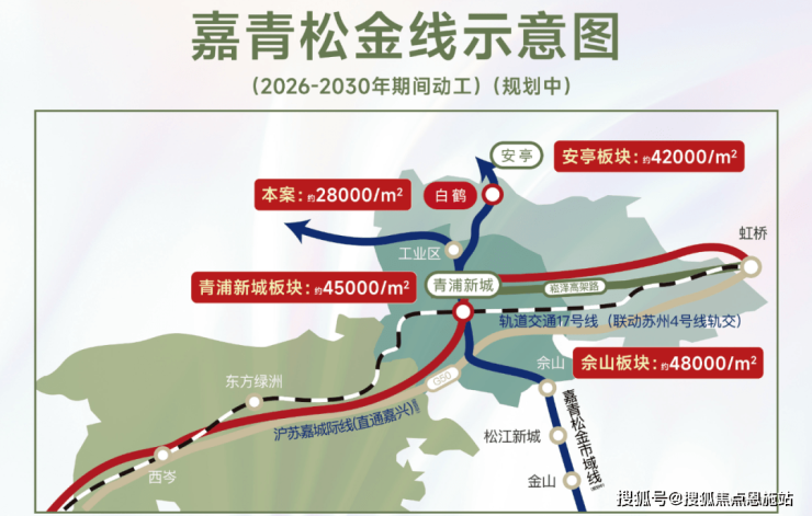 现在规划中的市域铁路嘉青松金线,将贯穿四区,与青浦新城直接连通,并换乘轨交17号线和沪苏嘉城际线;受轨交11号线交通辐射,未来可换乘即将试运行的苏州S1线,坐着地铁去苏州游玩;受轨交17号线的青浦“纵贯线”交通辐射,更可坐享长三角节点交通优势。
