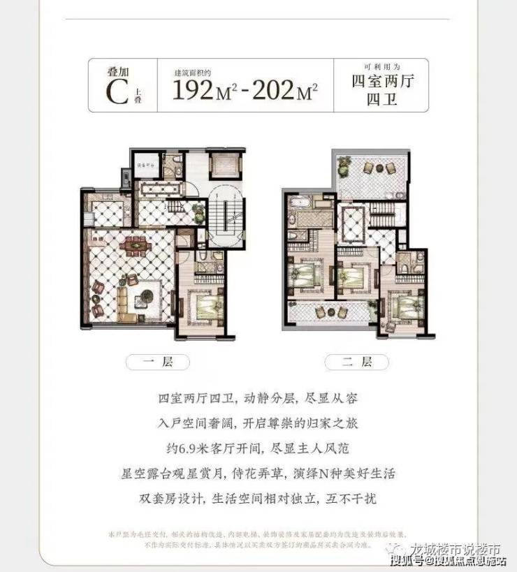 层层高3.1米,客厅挑高6.4米。其中上叠星空露