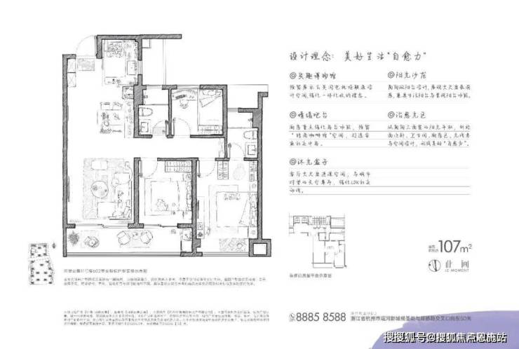建筑面积约107㎡“此间”户型深得杭州年轻客户的喜爱,拥有大尺度米餐客厅进深,在一体化动线之中,叠加了兴趣博物馆、家庭中岛、用餐区域、咖啡角等功能,让居住者随时与家人形成“情绪”上的输出与交流。