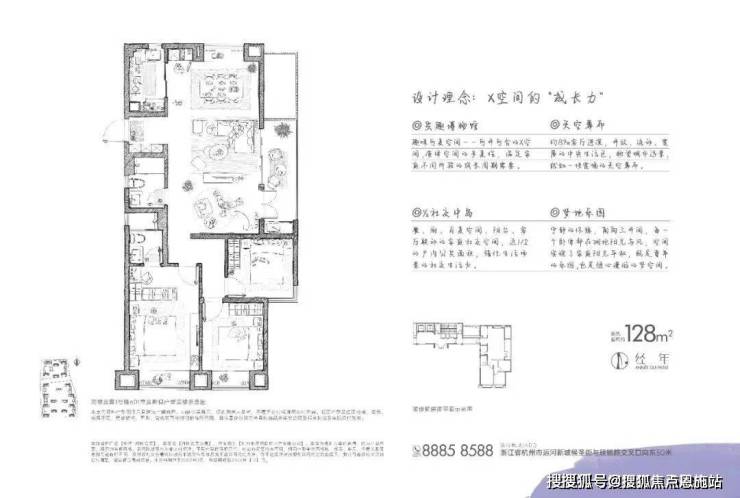 建筑面积约128㎡“经年”户型还拥有一个可随家庭生活需求而不断生长、变换的“第三厅”。比如从1-2岁的宝宝,到4-5岁的儿童,在到9-10岁的少年,第三厅可以完成从玩具房到独立空间的演变,之后,当孩子接近成年,这里又可以回到茶室,或开放式书房、小型影音室等。