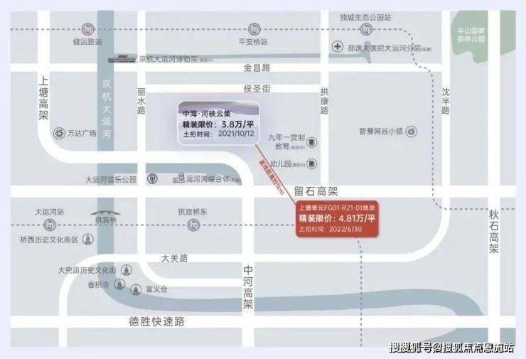 2021年最后一批土拍,运河湾地块限价4万,自此,运河新城南板块已迈入新房4万+时代,河映云集作为限价3.8万的项目,显得格外具有性价比。(价格单位为元/p㎡)