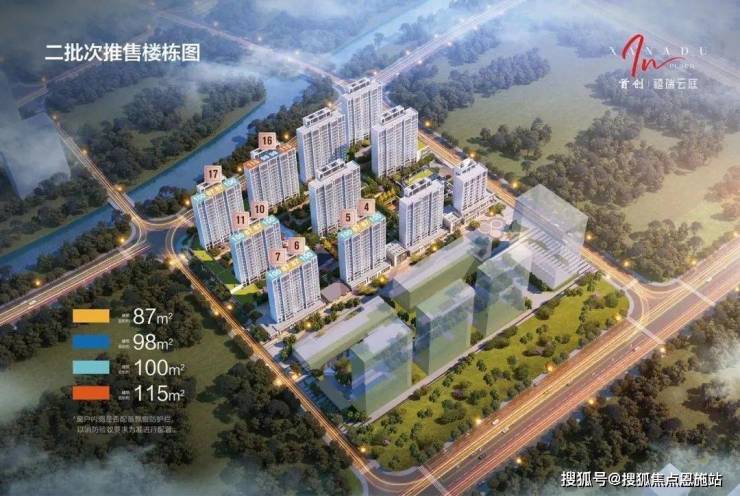 首创·禧瑞云庭 分为南北两个区,北面 规划10幢16-17层的高层住宅, 约87-115㎡3-4房全龄段户型, 住宅共计624套和1幢13层的保障房, 二期推出87-115㎡3-4房,共计308套房源(其中87㎡&100㎡各122套,98㎡&115㎡各32套),联动价 5.81万元/㎡。南面规划3幢办公产权类住宅,1幢6层的酒店和2幢2层商业用房及社区底商和配套用房组成。