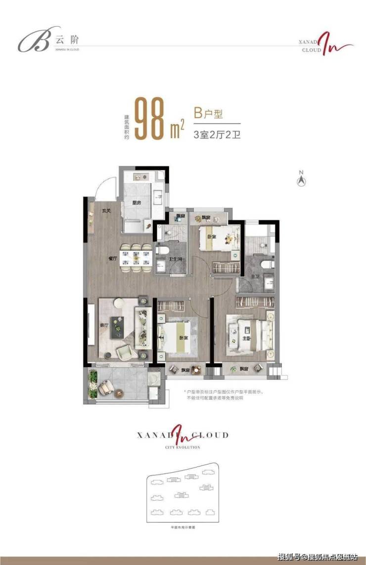 约98㎡和约100㎡进阶型3房,约81%以上的超高得房率,相同面积之下,更超值的尺度感受,同样每间房间都带飘窗,只是通过餐厨分布的细微区别,满足不同家庭的起居文化: