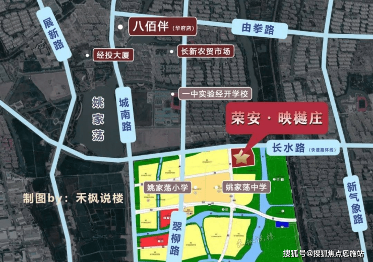 项目位于晴雪园以南,东侧为张桥港, 中间水系贯穿,与当年的丽岛嘉苑、劲茂府、堂樾庄相似。根据规划,正北规划新建小学,南侧为商业用地。