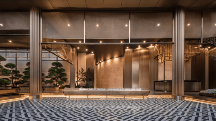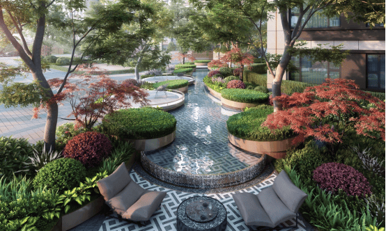 按照翡色礼境的景观理念,从入口的奢石、到内部的水景、雕塑甚至是局部的海派拼花铺装……每一幕视角皆是壁纸。
