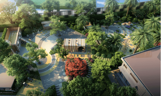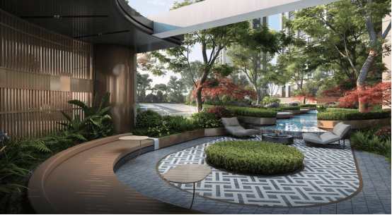 社区中央景观位的林下会客厅,糅合精工材质和自然光影,邻里社交假日休憩,让人在此流连时光。
