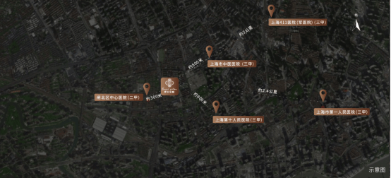 医疗配套:上海市中医医院(三甲)、上海第十人民医院 (三甲)、闸北区中心医院等优质医院。