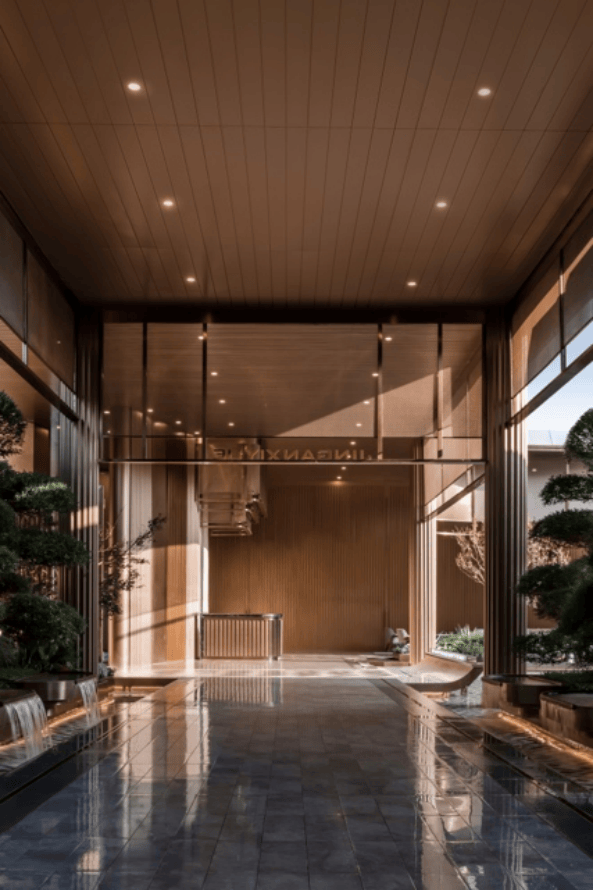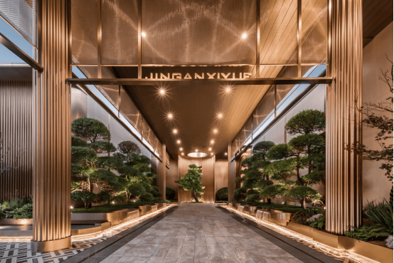 通过对仪式景墙、跌水、雕塑小品、归家廊道的美学定制,转译成独属于静安玺樾的艺术形态语言。