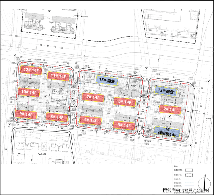 根据规划设计方案显示,项目拟建11幢14F住宅(含1幢保障房)、以及商业、配套用房等建筑。