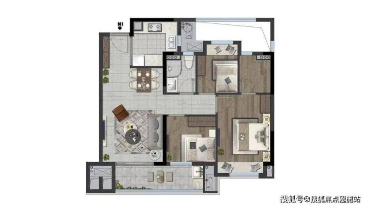劣势:公卫与北侧房间的门开向客厅,隐私性可能略有影响。