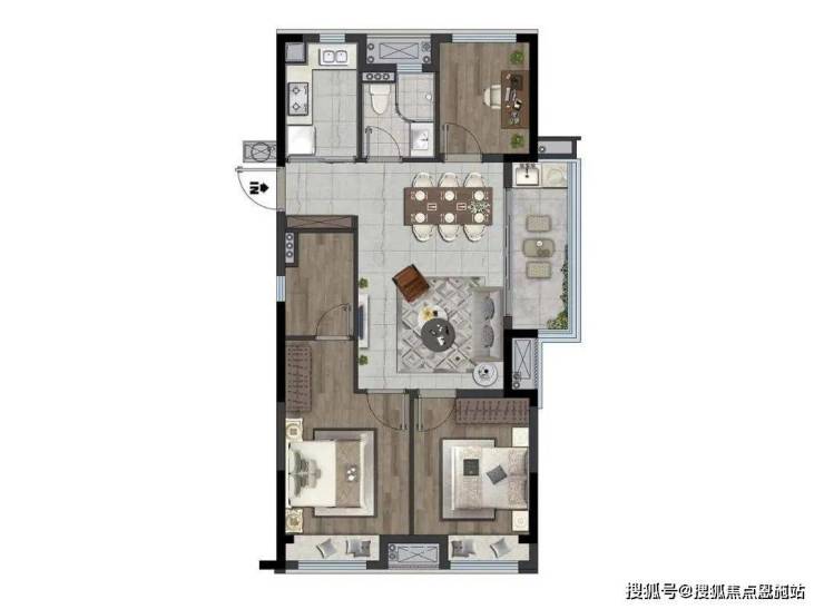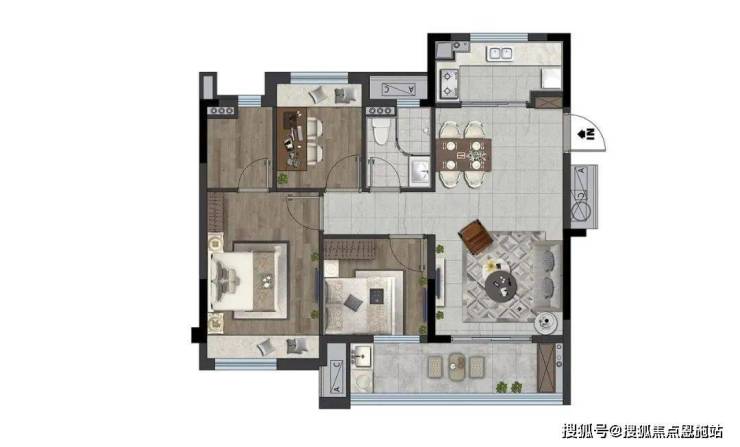 劣势:其中一间卧室与客厅通过阳台互连,隐私性略差。