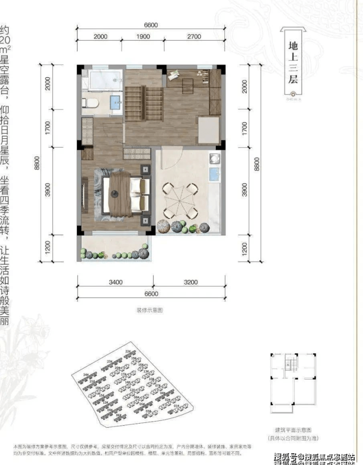 三楼整体约60平空间的主卧奢享套房,在露台上品一支红酒,看繁星点点,远山峻峭......