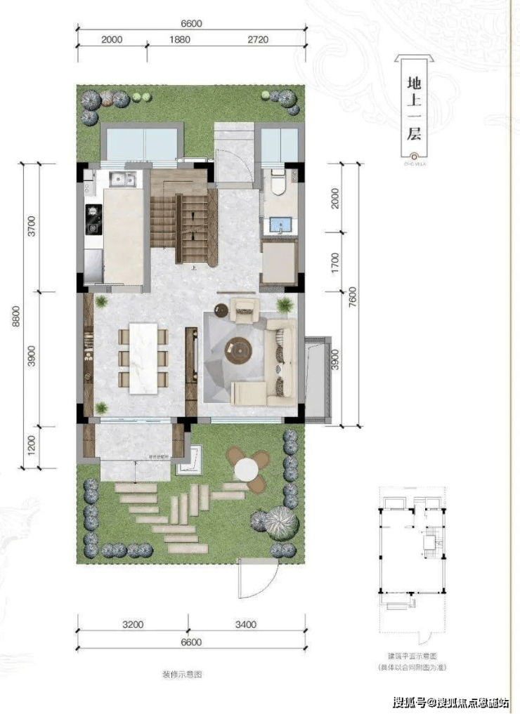 一楼有南北双庭院,前庭后院,种花品茗;