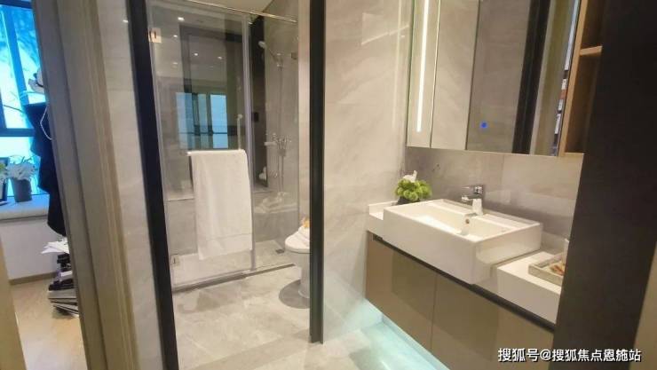 另外, 客卫镜柜带有除雾功能、中央空调通铺到厨房、地暖铺到了卫生间、更静音的同层排水......这样的一套精装体系,“既有面子又有里子”!