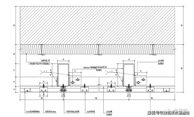 根据不同的外立面形式,本项目铝板系统分两种,第一种为常规打胶铝板幕墙,第二种为吊挂铝板幕墙。