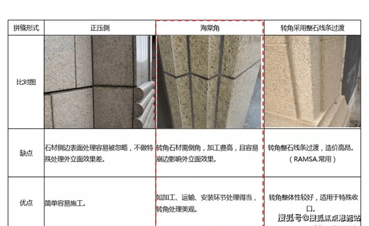 石材幕墙拼缝的形式对比: