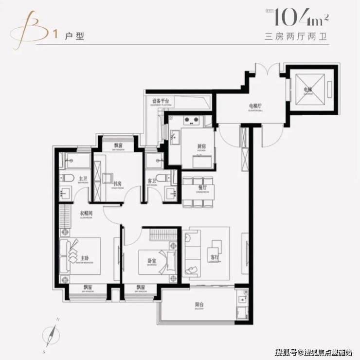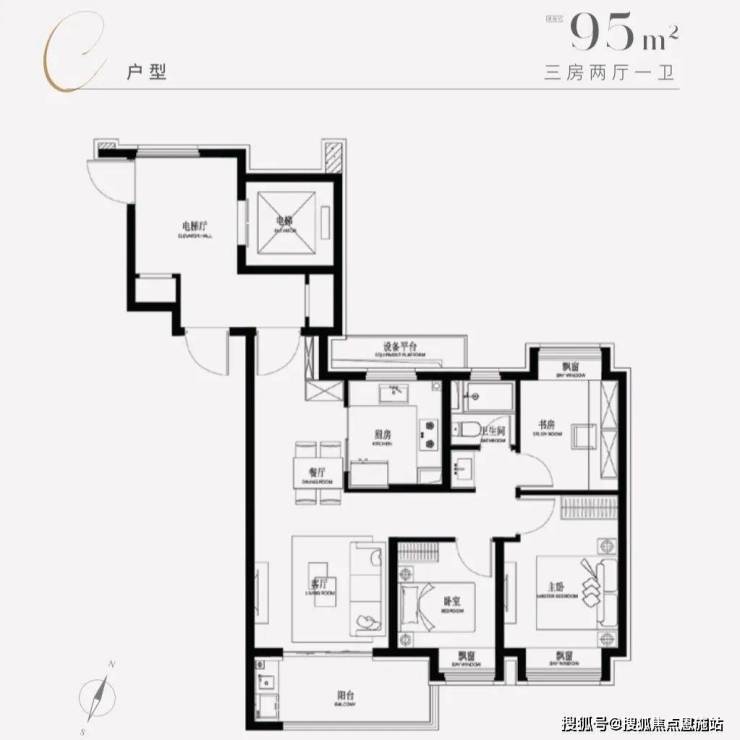 95-104m²的精装三房,同样是三开间朝南,南北通透,超阔阳台、卧室大飘窗,实现采光无敌的同时,将楼王最好的观景视野放大到极致!