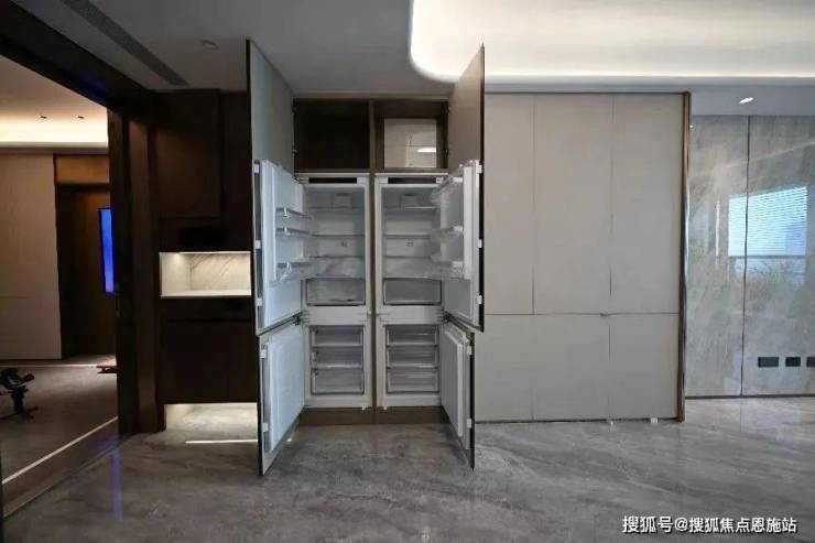 S墙的设计非常巧妙,将冰箱嵌入到客厅玄关旁的墙体中,既方便了日常拿饮料、水果,也解放了厨房空间。