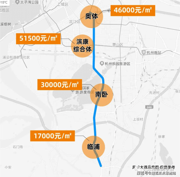 从4.7万的奥体到5.15万的滨康综合体,再到3万的南卧,临浦,一下子降到了1.7万(临澜之城),价格洪差显而易见。