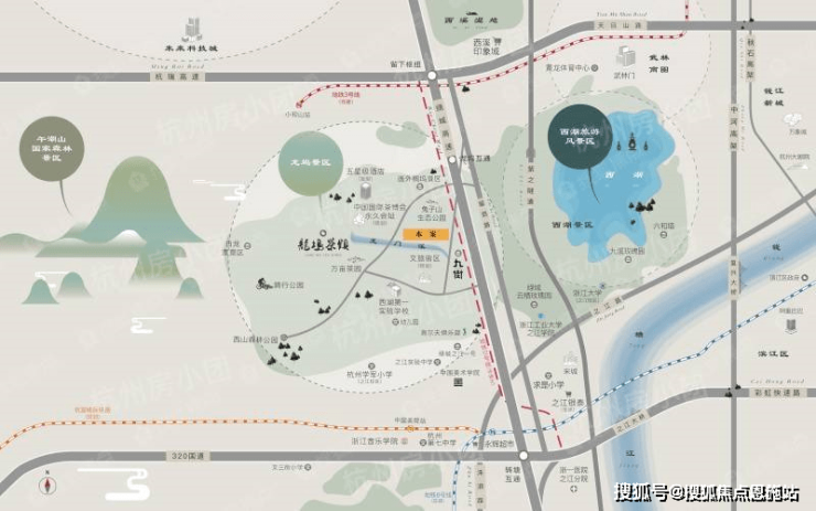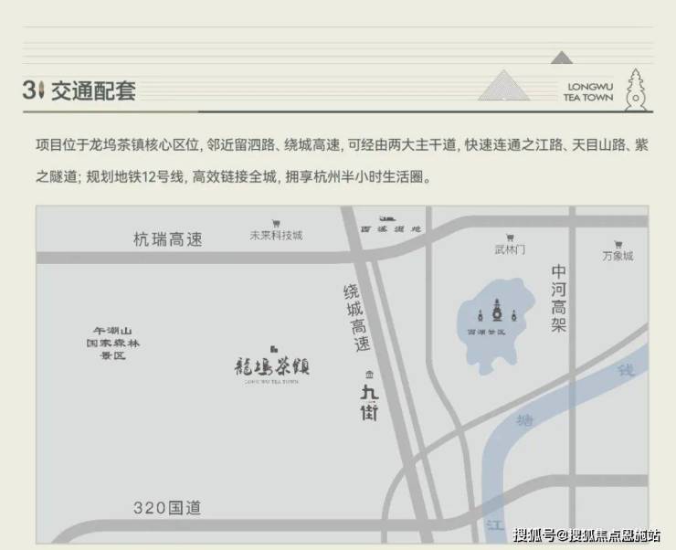 交通:西面绕城高速西线,紫之隧道和之江大桥,规划中地铁四期十二号线龙坞茶镇范围站点。