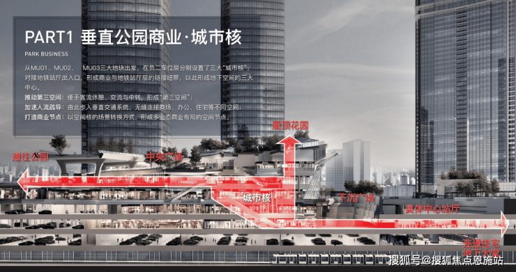 提出了TOD4.0的理念,将“站城一体化”升维到“站城人一体化”,以人为核心,打造垂直公园商业。