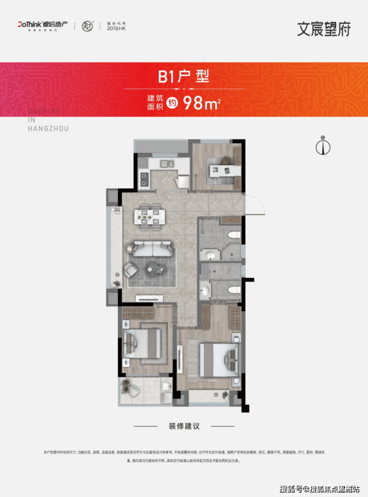 在建面约98方的中间套户型中,文宸望府采用了三开间朝南的设计,媲美市场上建面约120方以上的大户型。