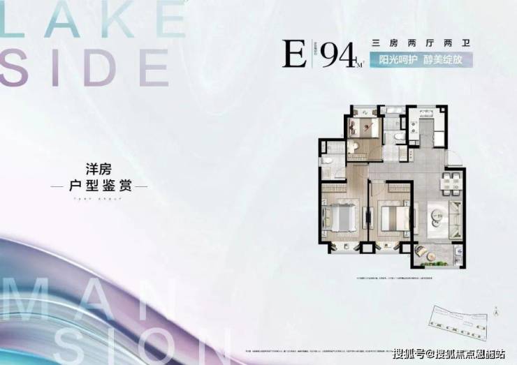 约94㎡ “全功能三房两卫”户型,堪称一步到位首选,三开间朝南,双卫套房设计,空间布局合理,且尺度不小,是兼具舒适性和功能性的更受欢迎的3房户型。