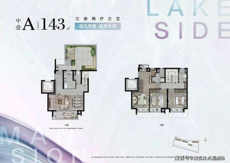 项目的下叠有庭前绿地+地下室,中叠大面宽+大露台+三开间朝南设计,上叠有露台+高附赠,每一叠都有特色,是改善必看的复式居住感。