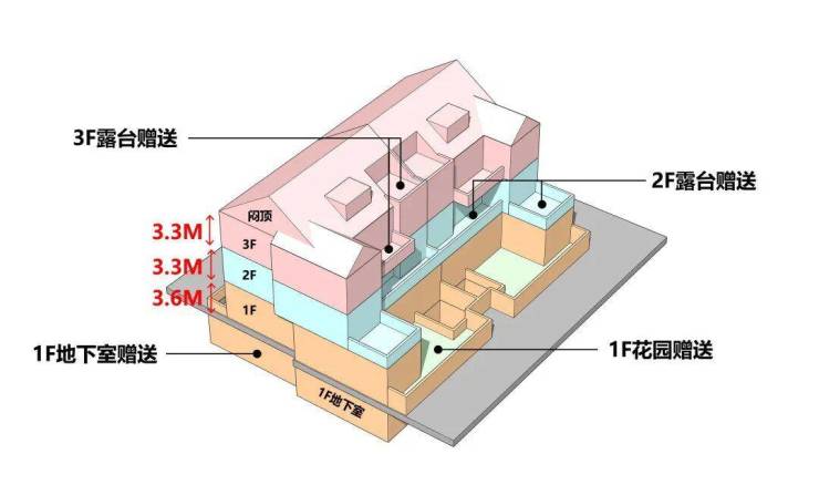 从户型设计来看,一楼户型附赠超大地下室及双层庭院;二楼户型附赠星空露台;三楼附赠露台及其他空间;户型实得率最大可以超过200%!平均也能达到约150%左右!