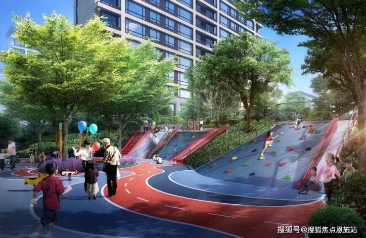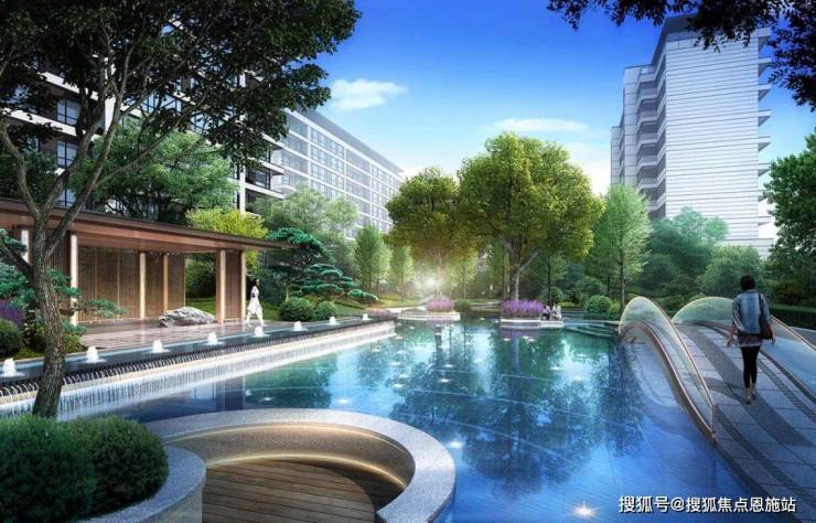 中轴以水为脉南北贯通,犹如一只瑞狮象征着品位与智慧;东西两条超级景观绿轴,筑起家门口的静音空间和生态屏障:“四水归堂”下沉会所,地上回形连廊,营造如同颐和安曼酒店般的归家仪式;中央水景——翡翠之心,三季有水,冬季作为下沉广场。