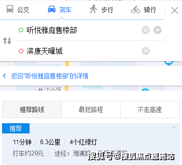 小胖以百度地图实测举例,从听悦雅庭售楼处出发,经风情大道驶过,到达滨江核心,相当便捷。