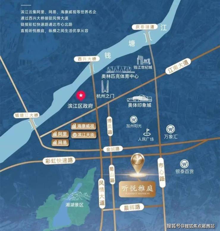 项目周边有风情大道、市心路、博奥路、通惠路四条主干道串联滨江、奥体和钱江两岸的繁华。