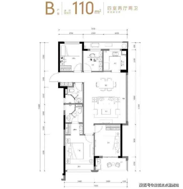 居然做到了四房两厅两卫的设计,用“神户型”来形容它,毫不为过。