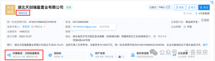 1.开发商:天创房地产有限公司(汉阳城建集团,国资背景100%控股)