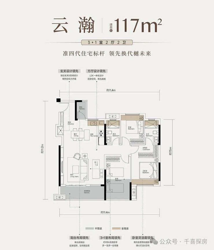 1. 产品设计领先:项目定位为准四代住宅,主打低密洋房及小高层,容积率仅2.5,洋房得房率超103%,高层约93%,通过飘窗、阳台半赠送等优化空间,性价比突出。户型设计灵活,如“S型玄关”提升收纳,毛坯交付便于个性化改造。