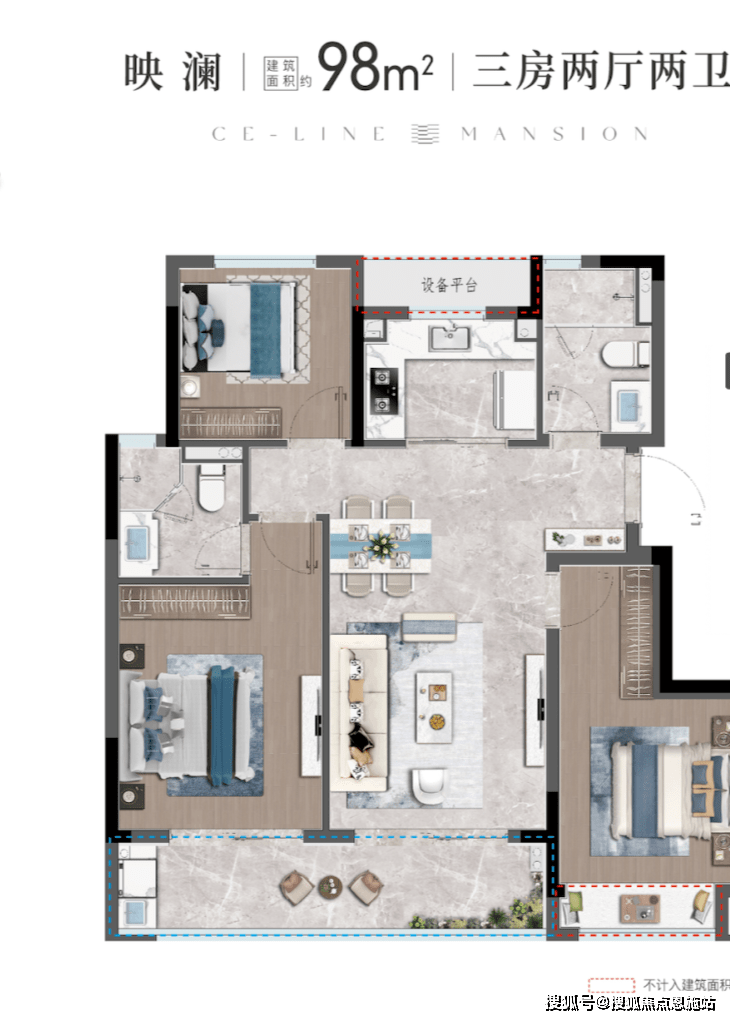 建面约98㎡洋房户型示意图杭州久映樾府售楼处热线:400-7802-070