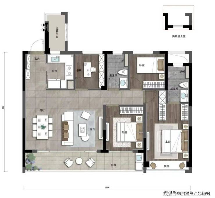 萧澜隐翠轩 单层层高为3m,妥妥品质之居的标准。项目为两梯四户设计,有建面约99方和127方户型,各有亮点,可以满足有不同需求的购房者。