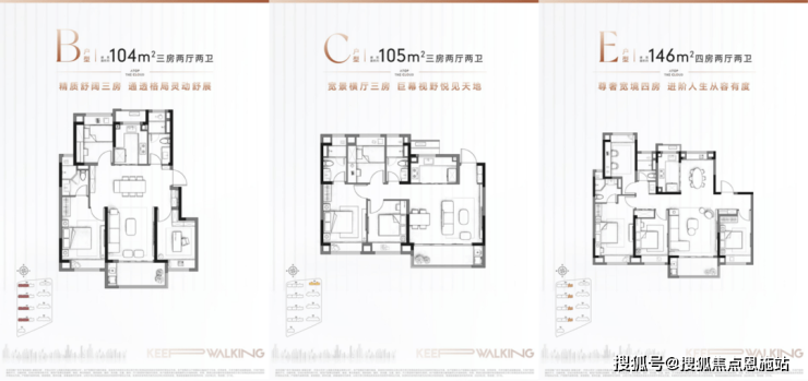 6号楼、8号楼——建筑面积约104㎡三房,建筑面积约146㎡四房
