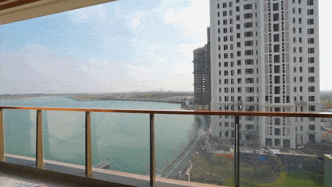 客厅外面是超宽的湖景阳台,犹如巨大取景框,无遮挡直面兰香湖。