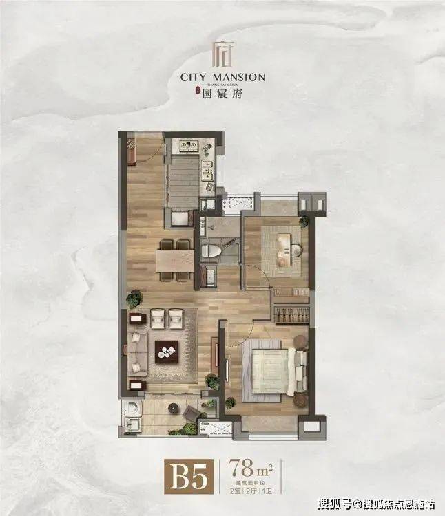 建面78㎡2房2厅1卫
