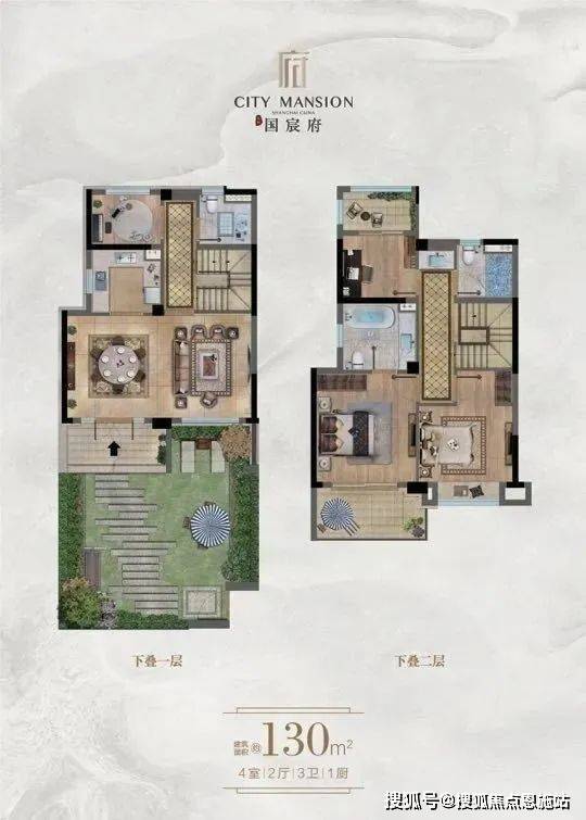 建面130㎡下叠4房2厅3卫