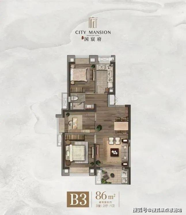 建面86㎡3房2厅1卫