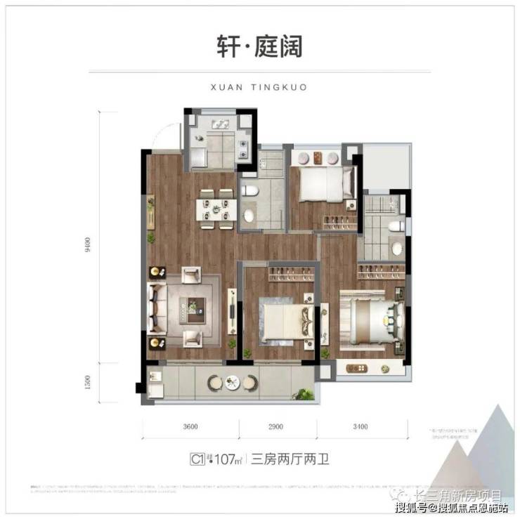 107㎡尺度人生,各空间舒适阔朗,符合改善人群需求。