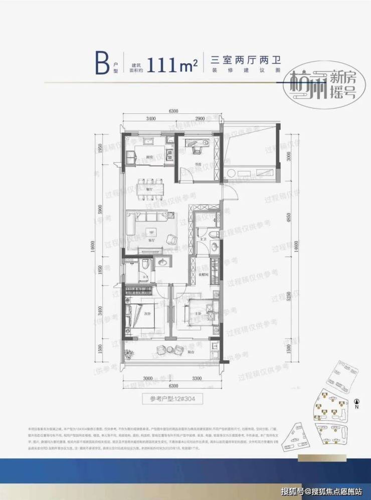 设计为三房两厅两卫的格局。三开间朝南,还有着小户型少有的双联阳台。主卧是一个标准的套房设计,带独立卫浴,而且它的层高十分舒适,有着3米的层高,这在普通住宅当中可是很难得的体验!