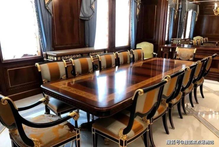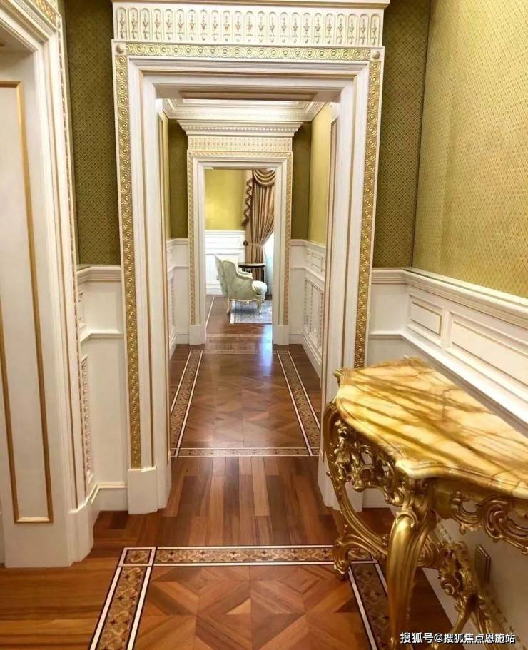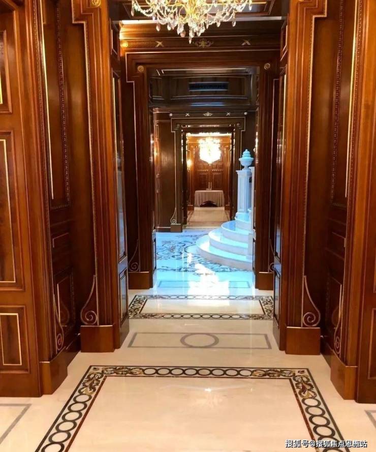 除了这栋超奢华的样板房,其他别墅装修的奢华程度也都超乎想象,随便拿出一栋,内部精致华丽程度都堪比宫殿。比如这栋英国亚当风格别墅的内部装修,延续建筑亚当风格之外,点缀了少量中国元素,精致大器之余,又底蕴十足。