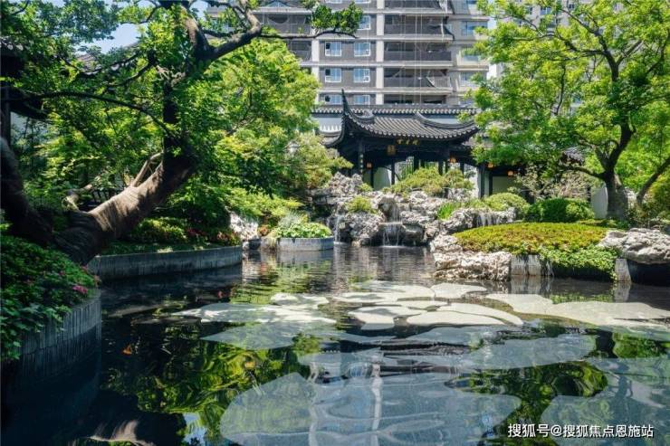 北门入口核心区景观「观澜亭」也是非常惊艳,把偷得浮生半日闲的东方哲学变成业主日常。以会客厅、水榭、水景为主,将景观打造呈现出一种,给人轻松惬意的休闲会客体验。